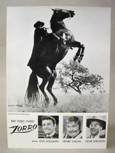 Para realizar El Zorro, el actor tenía que ser atractivo, con un aire latino y con alguna experiencia en esgrima. El mismo Walt Disney entrevistó a Guy Williams (de 32 años de edad), e inmediatamente le pidió (cómicamente) que se dejara “un bigotito no muy largo ni muy grueso”. El pago que pidió Williams era muy alto (2.500 dólares por semana), pero se le otorgó. Guy Williams retomó su entrenamiento profesional de esgrima con el campeón belga Fred Cavens (que también había entrenado a Douglas Fairbanks, Errol Flynn y Tyrone Power), ya que —según el pedido de Walt Disney— en el programa utilizarían espadas reales sin protección. Disney le ordenó que —para interpretar al Zorro a la perfección— tomara clases de guitarra con el famoso Vicente Gómez.