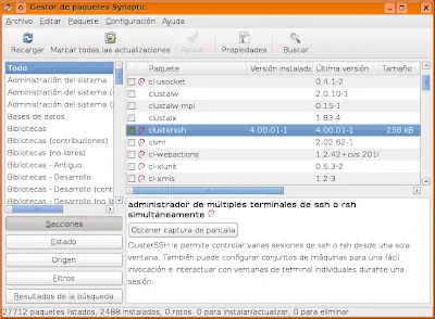 ClusterSSH es una aplicación para la administración de ordenadores conectados en red, abre una ventana de terminal con conexión a determinados hosts y una pequeña consola de administración. Todo texto escrito en la consola de administración se replica a todas las demás ventanas activas y conectadas. El proposito de esta herramienta es brindar a los asministradores de sistemas que trabajan con una gran cantidad de servidores Linux/Unix poder administrar dicho conjunto de sistemas independientes a la vez.
