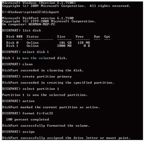 Cuando haya formateado asignaremos una letra a este disco booteable para hacer esto solo tecleamos "assign" y listo