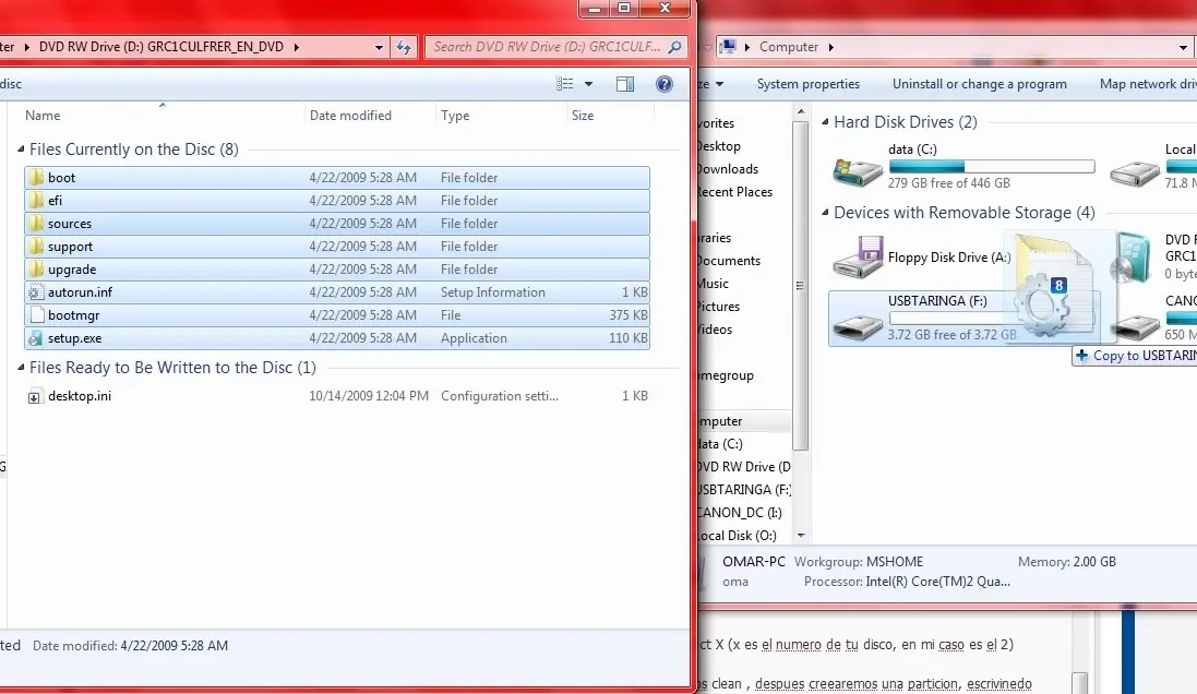 Listo ya tenemos un USB booteable en este caso con Windows 7 XD