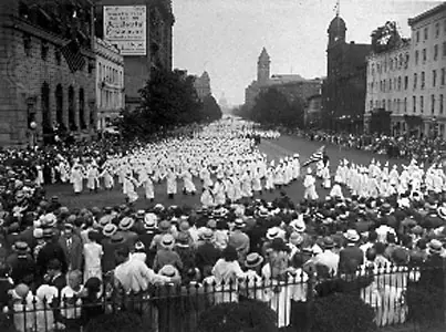Miembros del Ku Klux Klan marchan en la avenida Pennsylvania en Washington D. C. en 1928