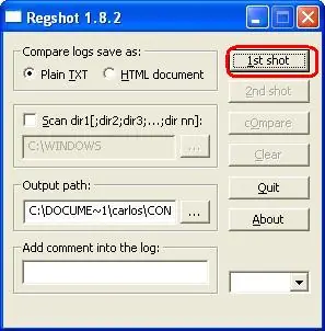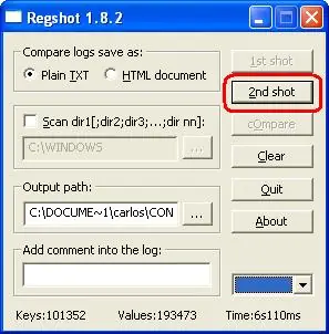 Para conocer las claves modificadas o creadas en el registro del sistema al instalar FlashGet, debemos hacer una “imagen” del registro antes de la instalación y compararla al registro después de la instalación del programa. Para ello, utilizaremos el programa Regshot hecho portable por Framasoft.