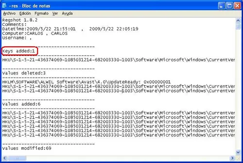 Regshot generará un informe (en formato txt o html de acuerdo a la opción que se haya elegido):