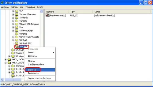 Luego dirígete a la clave HKEY_CURRENT_USER\Software\JetCar\: