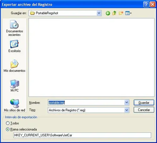 Haz clic sobre la clave y selecciona Exportar. En la ventana que aparece ponle como nombre portable.reg y haz clic en Guardar.