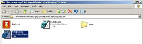 Copia la carpeta de instalación del programa (por lo general se encuentra en "C:\Archivo de programa" en la carpeta donde pusiste “portable.reg” y modifica el nombre de la carpeta de la aplicación (en nuestro caso “FlashGet”) y ponle “App”