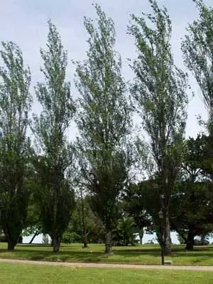 Alamo plateado - Nombre científico Populus alba L.Arbol caducifolio.- Altura: 20-30 m. Diámetro: 10 m. Forma redondeada. De rápido crecimiento.Con su corteza y ramas blancas tiene una belleza única en el jardín. En otoño la coloración es marrón o amarillenta.La floración se produce antes de que broten las hojas.Se cultiva como árbol ornamental, pero necesitan jardines grandes.Raíces de crecimiento excesivo; no plantar cerca de las casas. Muy utilizado como cortavientos y en caminos cerca del mar. Crece en suelos frescos y húmedos.Soporta bien el frio. No tiene grandes requerimientos en cuanto al tipo de suelo, pudiendo vivir en suelos pobres calcáreos.