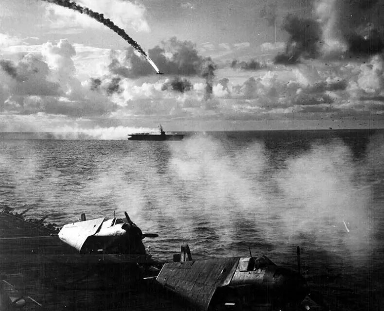 * Bombardeo aéreo masivo de civiles y lanzamiento de cohetes V-1 y V-2 iniciado por el Eje en Varsovia, Londres y otras ciudades, que fue continuado por los aliados a una escala mucho mayor (Tokio, Berlín, Dresde y Hamburgo entre otras). Además, por primera y única vez, la bomba atómica fue utilizada en una guerra: dos bombas arrojadas por Estados Unidos explotaron con tres días de intervalo, en Hiroshima y Nagasaki.