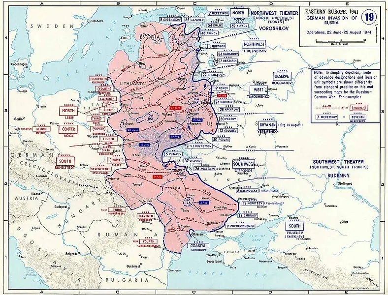 La batalla de Grecia y la Invasión de Yugoslavia retrasaron la invasión alemana seis semanas críticas, como posteriormente se puso de manifiesto. Tres Grupos de Ejército alemanes, junto con otras unidades militares del Eje, que en total hacían unos 3,5 millones de hombres, se lanzaron a la invasión de la Unión Soviética el 22 de junio de 1941. El Grupo de Ejércitos Norte estaba desplegado en Prusia Oriental y estaba compuesto por los ejércitos de infantería 18º y 16º y un ejército Panzer, el 4º al mando de los generales Busch, Von Küchler y Hoepner, todos bajo las órdenes del mariscal Ritter Von Leeb, apoyados por la 1° flota aérea del general Koller totalizando 450.000 combatientes del Eje. Sus objetivos principales eran el asegurar los estados bálticos y tomar Leningrado. Oponiéndose al Grupo de Ejércitos Norte estaban tres Ejércitos soviéticos compuestos por 450.000 hombres en un principio, pero con las nuevas movilizaciones se aumentó el número a 600.000 al mando del mariscal Voroshilov. Los alemanes lanzaron sus 600 tanques contra el punto de contacto de los dos Ejércitos soviéticos en ese sector. El objetivo del 4º Ejército Panzer era cruzar los ríos Niemen y Dvina, que eran los dos mayores obstáculos en la ruta hacia Leningrado. En el primer día, los tanques cruzaron el río Niemen y penetraron 80 kilómetros. Cerca de Rasienai, los Panzers fueron contraatacados por 300 tanques soviéticos. Los alemanes tardaron 4 días en rodear y destruir a los tanques soviéticos. Los Panzers, cruzaron después el Río Dvina cerca de Dvinsk.