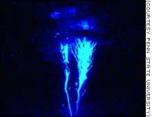 Están restringidos a la parte de la atmósfera ubicada por debajo de 40 km de altitud y son difíciles de observar. Por esta razón la observación de estos fenómenos requiere ir por encima de la parte densa de la atmósfera baja. Estos extraños conos de luz azul fueron registrados por primera vez en una intensa tormenta producida en Arkansas, EEUU, en 1994. Estos chorros luminosos surgen de la parte alta de las nubes de tormenta a una velocidad de alrededor de 120 km/s.
