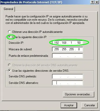 Es aquí donde pondremos nuestra dirección IP y la máscara de subred tal y como se ve en la figura.