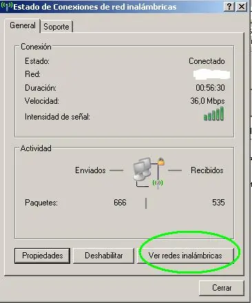 en la que debemos pulsar el botón Ver redes inalámbricas para que nos permita ver las redes disponibles, tal y como se ve en la siguiente imagen.