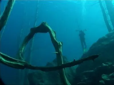 Situado a 30 metros de profundidad en el lecho del lago Traful, en la Patagonia, el bosque sumergido recrea un paisaje de fantasía, capaz de deslumbrar a quienes se animen a bucear entre gigantescos árboles casi intactos, como si se estuviera volando en un paisaje de película.