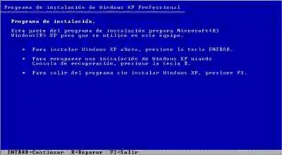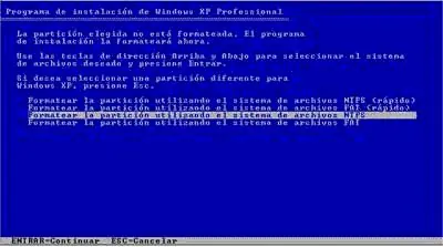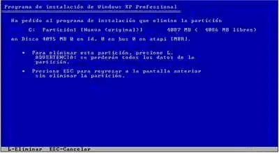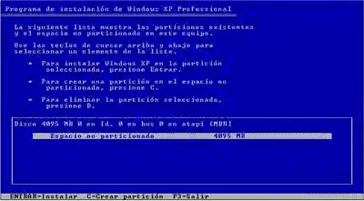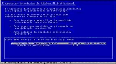 5-Ahora prepararemos el disco duro para instalar los archivos de Windows XP.