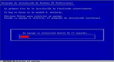 9-Seguidamente se formateará la partición, se instalarán los archivos básicos y se reiniciará automáticamente el ordenador como muestran estas imágenes.