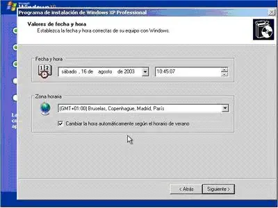 Lo siguiente es ajustar la fecha y la hora de nuestro sistema. Una vez completado este proceso pulsaremos Siguiente de nuevo.