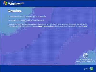 18-Aceptamos la primera pantalla de finalización de la instalación de Windows XP.