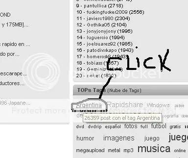 Paso 1 - En la pagina principal de T! vamos hacia abajo y clickeamos en alguno de los Tags mas buscados