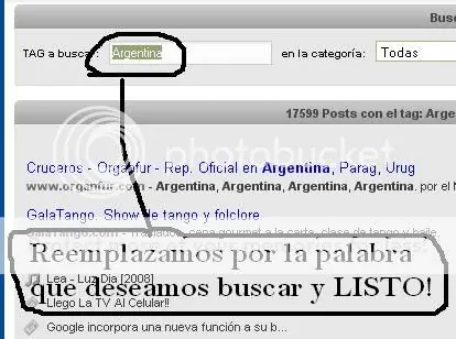 Paso 2 - Al haber clickeado en un Tag seras redireccionado a lo que la busqueda del mismo da como resultado ... luego simplemente reemplazamos el tag por lo que realmente queremos buscar y listo!