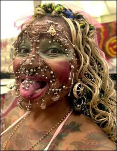 El dato más curioso de Elaine es que la mayor concentración de aritos -500 de ellos- ¡los tiene en la vagina! Sí, por fuera y por dentro... ni Robocop se acerca ahí.