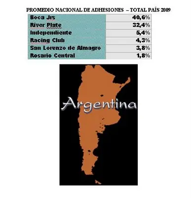 - Boca Juniors es el club con mayor cantidad de simpatizantes en el país con el 40,6% de las menciones