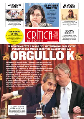 –Zapatero está en España; acá, lo que se hizo, lo hicimos nosotros –respondió el ministro de Justicia y Seguridad, Aníbal Fernández, resaltando que Kirchner se compromete a votar la ley de identidad de género y la reforma a la ley antidiscriminatoria, pero que el matrimonio gay no es un tema que se pueda saldar en los pocos días que faltan para los comicios.