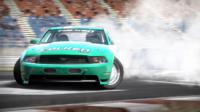 Cuando llego el momento de añadir este estilo de conducción a NFS Shift queríamos asegurarnos de este modo fuera tratado con el mismo nivel de rigurosidad y realismo que el resto del juego asi que trabajamos codo con codo con el Equipo Falken y el campeón mundial Vaughn Gittin JR. El plan inicial era que Vaughn jugara al juego unas cuantas veces y nos diera algo de feedback pero finalmente terminó jugando más de 100 horas con el equipo para asegurarnose de que la experiencia de Drift fuera tan cercana a la vida real como fuera posible.