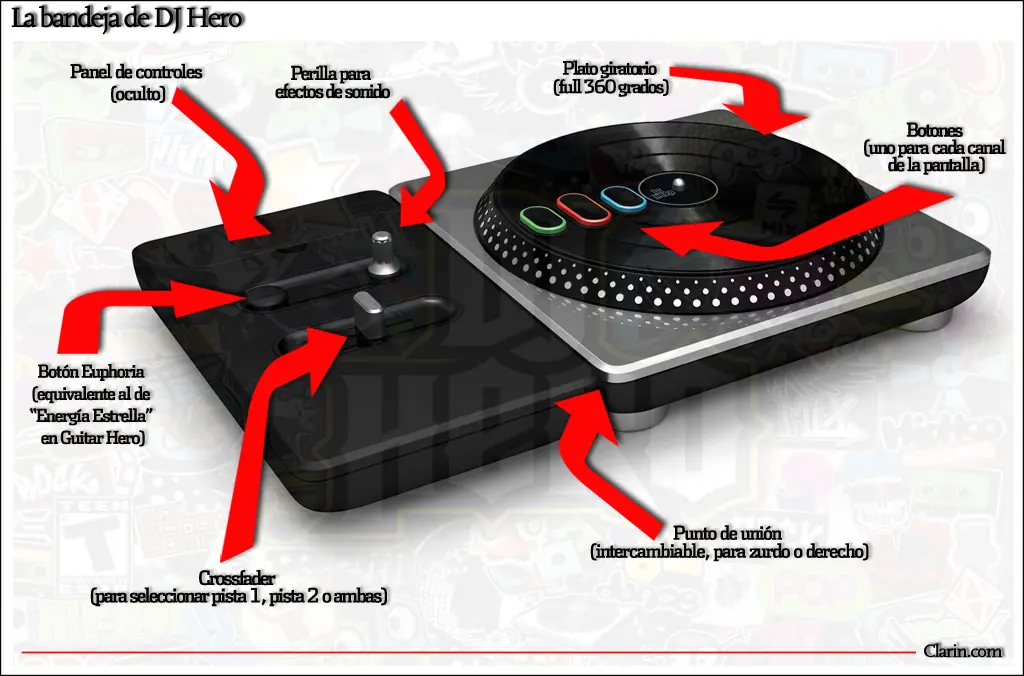 En DJ Hero, la bandeja (ver infografía) estará en el centro de la escena: no se podrá jugar sin ella, según informaron los desarrolladores. Esto marca una diferencia con Guitar Hero, que puede ser disfrutado sin problemas con un teclado en la computadora o con un gamepad en consolas (es cierto, se complica un poco en los niveles más altos, y la sensación no es la misma).