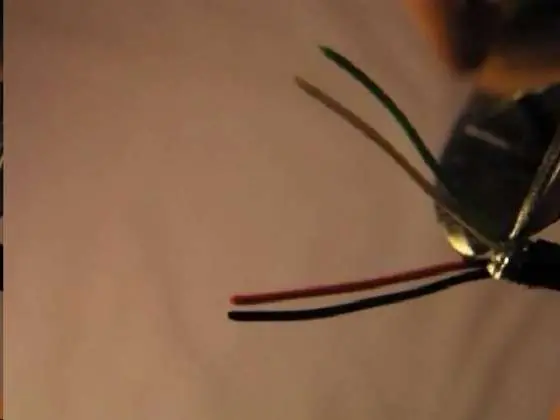 Para iniciar, lo primero es cortar el macho o la hembra del otro extremo del cable y quitar el aislante protector externo, cortar los cables blancos y verde y aislar, ya que no son necesarios para este proyecto. Luego quitaremos el aislante de los otros dos cables (Rojo y Negro).