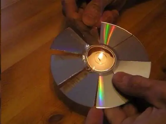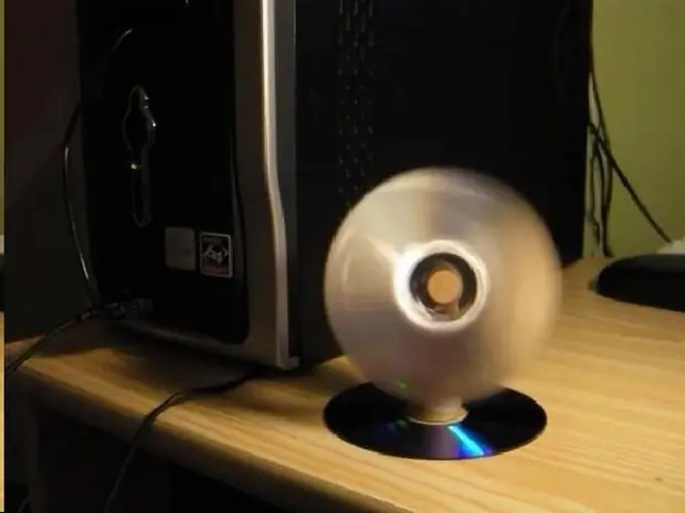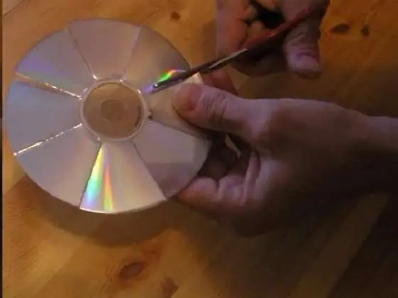 Tomar uno de los CD ó DVD y cortarlo de manera tal que quede dividido lo mas simétricamente posible, ya que de este saldrán las paletas del ventilador, y por lo tanto, si las secciones no son cortadas lo mas perfecto posible pueden provocar que el ventilador vibre.