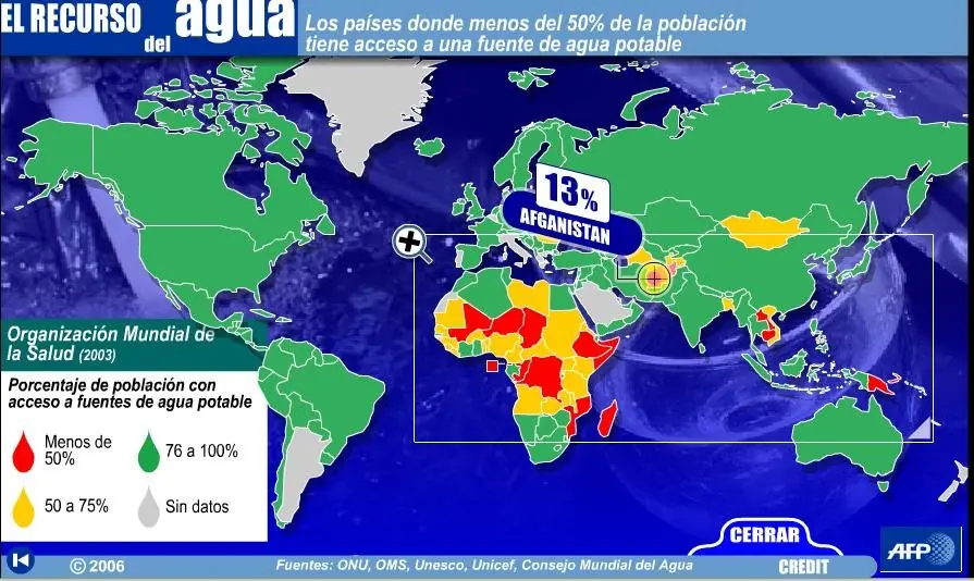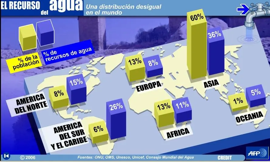 Ahora...¿Porqué doy en un post titulado La Guerra del Agua?, bueno, AFP pública una interesante información respecto de la situación del agua en el mundo hoy, y me pareció interesante tratar este tema acá, aun cuando no tenga relación con la conformación de equipos de Alto Rendimiento, tiene relación con nuestra propia vida, les dejo las imagenes sin mayores comentarios: