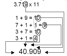 3.719 x 11 = 3.719 x 10 + 3.719 = 37.190 + 3.719 = 40. 909