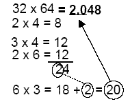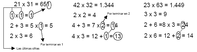 3º Se multiplican los dos primeros dígitos y a su resultado se le suma la cantidad del 2º caso y lo que dé, serán las dos primeras cifras.