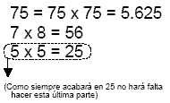 1º Siempre van a acabar en 25, estas serán siempre los dos últimos dígitos