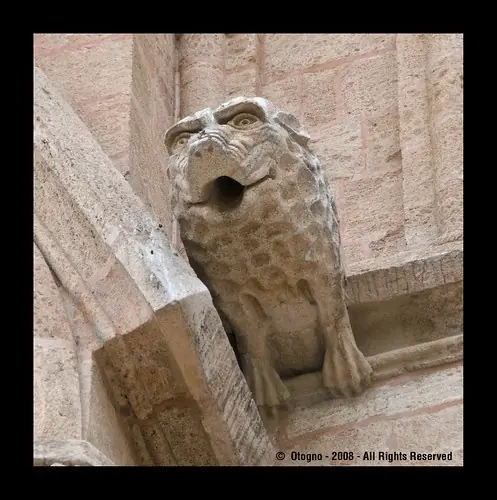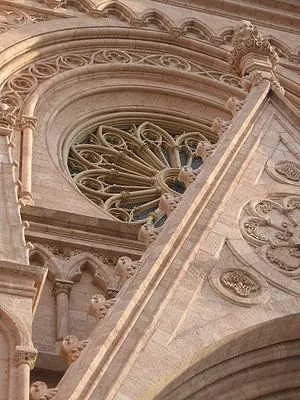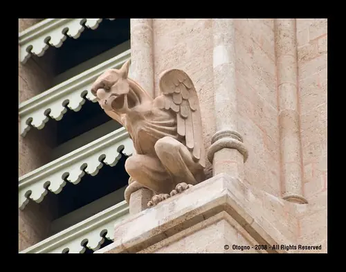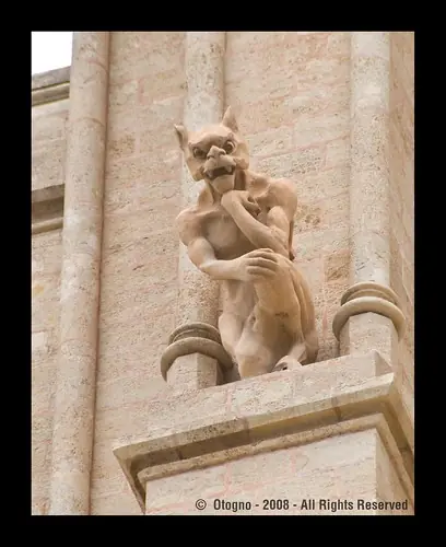En las hornacinas del lado oeste encontramos a San Pablo, Santiago el menor, San Felipe y San Bartolomé; y en el costado San Mateo, San Marcos, San Lucas y San Juan. Coronando las hornacinas están los demonios, alegorías o quimeras que representan el demonio expulsado del templo.