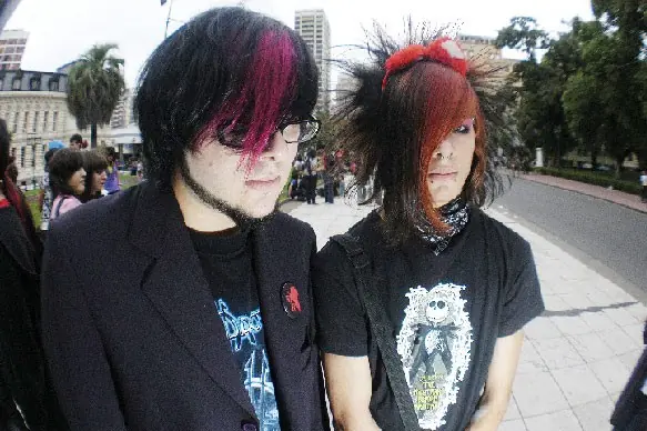 Utilizan un peinado que cubre parte de la cara, piercings, zapatillas Converse, muñequeras y remeras (casi siempre negras).