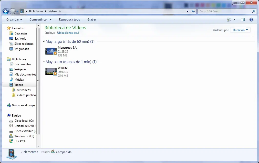 Las bibliotecas de vídeo tienen sus propias opciones de clasificación igualmente útiles. Podemos clasificar los contenidos por año, tipo, duración y nombre