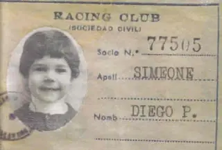 Por si todavía quedaban dudas acerca de la condición “racinguista” de Diego Simeone, esta foto de archivo acaba con todo tipo de discusión. En primer plano, podemos apreciar el carnet de socio de Racing Club (nº 77505) de un “Cholo” con escasos años de edad.