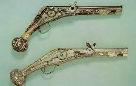 La problemática más importante durante 300 años, fue la forma de encendido, que luego de hacerlo a mano, pasó por el sistema de rueda o "Wheellock", originario de los sistemas de reloj de Nüremberg, Alemania. Consistía en una rueda a la cual se le daba cuerda y al apretar el disparador producía chispas, que a su vez encendía la pólvora de la cazoleta, produciendo la deflagración de la pólvora y el consecuente disparo del arma. Es el principio del encendedor de nuestros días.