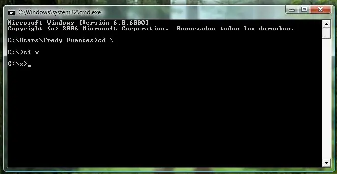donde "cd \" es para salir del directorio, "cd x" es para ingresar a la carpeta donde tenemos los archivos