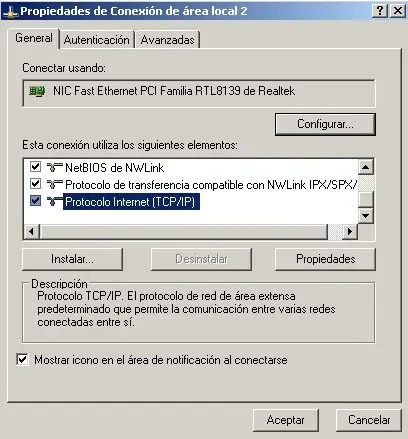 Paso 3: ve a propiedades y has doble click sobre protocolo internet TCP/IP