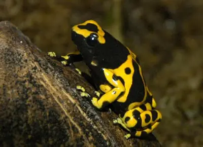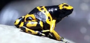 Es el anfibio más venenoso de toda la Tierra. Esta rana exuda su veneno; es tan potente que puede matar, con todo su veneno, a 1500 personas. Se llama “rana punta de flecha” porque los nativos mojaban la punta de una flecha con su veneno a la hora de cazar para matar al animal rápidamente. También es llamada Rana del Dardo Dorado.