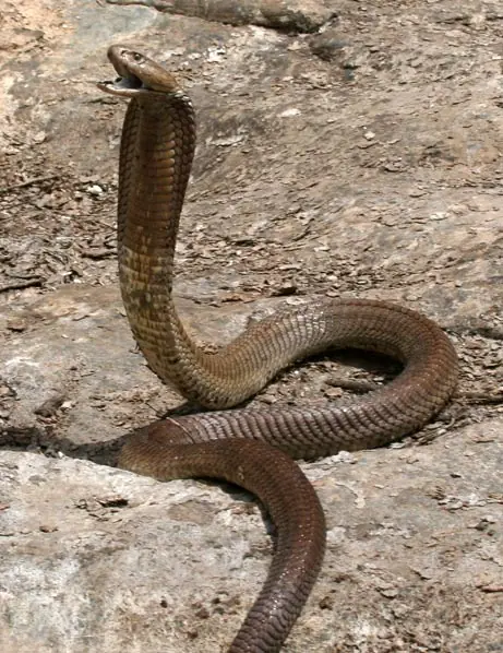 Cobra es el nombre común de un grupo de serpientes venenosas de la familia Elapidae, en especial los géneros Naja, con unas 20 especies, y Ophiophagus, con una especie, conocidas por su aspecto amenazante y su mordedura. Habitan en zonas tropicales y desérticas del sur de Asia y África.
