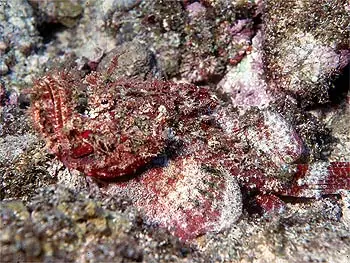 Este es el pez más venenoso de la tierra. Tiene púas en la aleta dorsal, cada púa con una glándula venenosa. Su apariencia de roca puede ser muy peligrosa, ya que el bañista corre el riesgo de pisarlo y envenenarse. Tiene un veneno extremadamente peligroso y, normalmente, la víctima no logra sobrevivir. Si sobrevive, la herida dura varios meses en curarse.