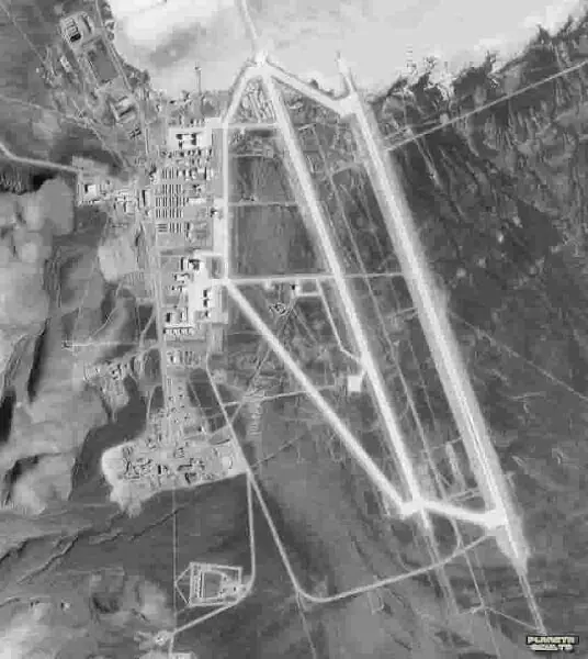 Durante la cumbre de la Guerra Fría satélites espía soviéticos obtuvieron fotografías del área de Groom Lake, pero éstas solo aportan modestas conclusiones acerca de la base. Muestran una base indescriptible, pistas de aterrizaje, hangares, depósitos de combustibles y agua, casamatas semi-subterráneas, etc., pero nada que apoye algunas de las teorías más descabelladas sobre instalaciones subterráneas. Las imágenes posteriores de satélites comerciales muestran que la base ha crecido, pero permanece igual superficialmente.