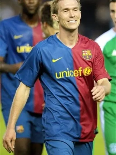 En el siguiente partido (Barcelona 1-Racing Santander 1, 06/09/08) consiguió la titularidad, mas no completó ni la primera parte: tras una dura entrada de Pinillos que le produjo un esguince de grado 2-3 tuvo que abandonar el partido.