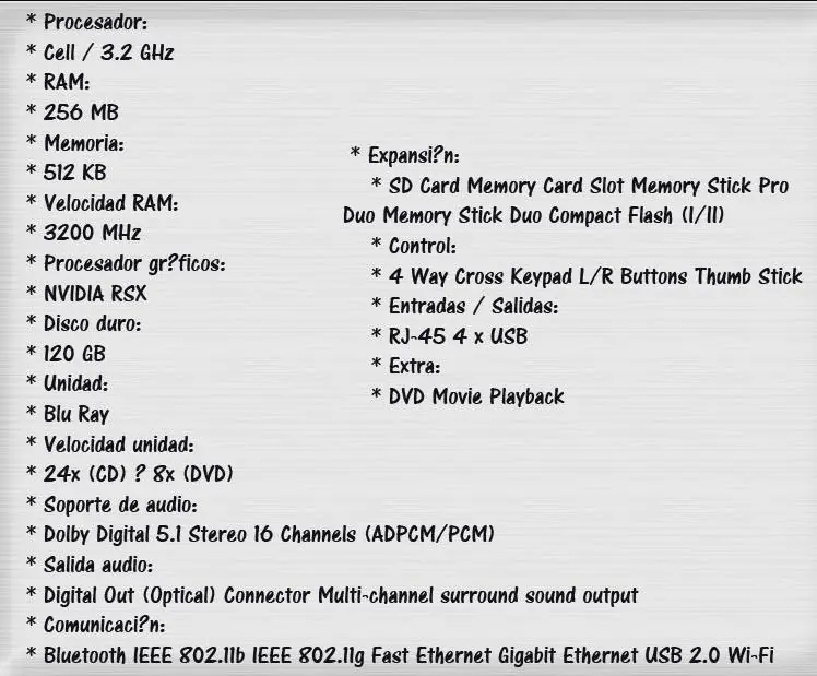 5. el nuevo dual shock 3, tiene un sistema de deteccion de movimiento, llamado sixaxis... este nuevo sistema de movimiento hara mas reales los juegos (ya sea de carreras, aviones, etc). lo malo del mando es que al tener el sensor de movimiento, los fabricantes de sony, decidieron sacraficar la vibracion del mando devido a problemas entre el sensor y la vibracion