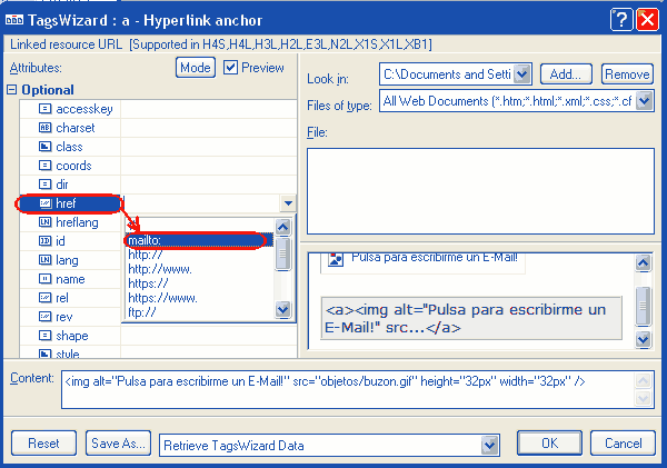 Como vas a ver, es muy parecido al código Html de un enlace a otra página web. Solo cambian una palabrilla, y por supuesto la ruta, que en este caso será simplemente tu dirección E-Mail. La línea de código en Html es la siguiente: