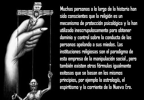 Muchas personas a lo largo de la historia han sido conscientes de este mecanismo de protección psicológica y ha sido utilizado inescrupulosamente para obtener dominio y control sobre la conducta de estas personas que son fácilmente manipuladas apelando a sus miedos. Las instituciones religiosas son el paradigma de esta empresa de la manipulación social que sigue vigente aún en nuestros días, pero también existen otras fórmulas que consiguen parecida manipulación basándose en los mismos principios. Astrólogos, curanderos, homeópatas, futurólogos y toda esta serie de pseudocientíficos son buen ejemplo de ello.
