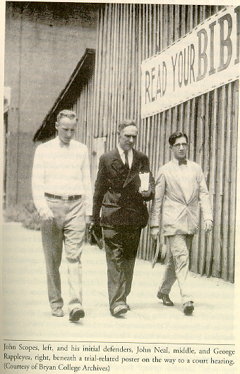 Scopes, sin embargo, continuó enseñando la teoría de la evolución. Pero ahora estaba quebrando la ley estatal y fue arrestado y acusado de “desmoralizar la paz y la dignidad del estado”. Quizás esa detención no hubiera tenido mayor importancia, pero entró en juego como fiscal uno de los hombres más importantes de EEUU del momento. Era William Jennings Bryan, candidato demócrata a la presidencia de los EEUU por tres veces y líder de la cruzada fundamentalista que pretendía suprimir la Teoría de la Evolución de todas las escuelas del país. Bryan vio la oportunidad dar un fuerte golpe al ateísmo y llegar, de paso, a ser presidente. El defensor iba a ser el más brillante abogado defensor de la época. Se llamaba Clarence Darrow. Scopes no hubiera podido pagarle, pero cuando se enteró quién era el fiscal se ofreció a representarle de forma gratuita.